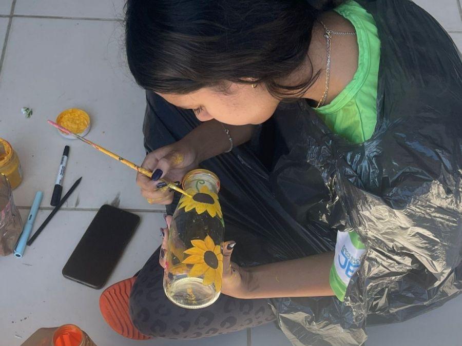 SUSTENTABILIDADE –Integrando o projeto, alunos participaram da aula de sustentabilidade com a confecção de vasos ecológicos utilizando garrafas PET recicladas. Alguns desses vasos foram projetados com sistema automático de irrigação, desenvolvidos com criatividade e foco na economia de água.