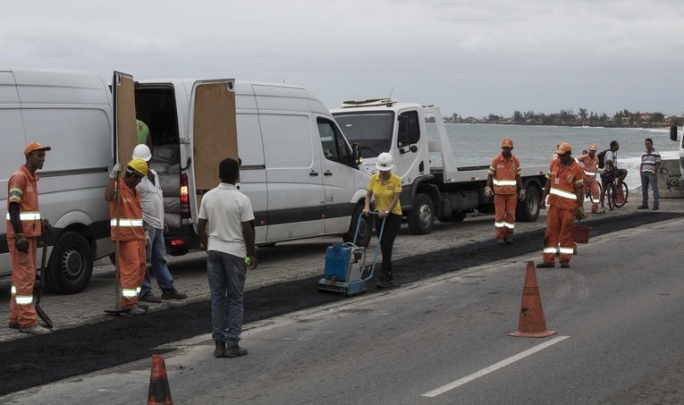 O serviço de recomposição asfáltica já passou pelas localidades de Nova Aliança, Recanto e, esta semana, também é efetuado em vias de acesso a Zona Especial de Negócios – ZEN Rio das Ostras.