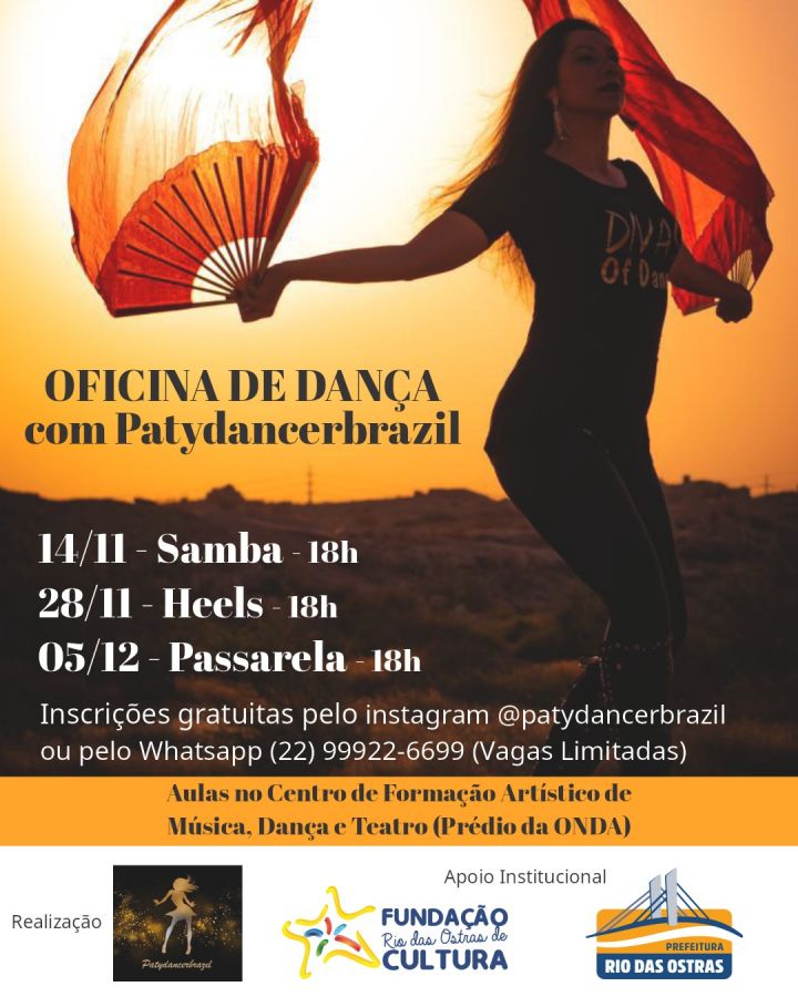 As interessadas devem realizar suas inscrições, que são gratuitas e sujeitas à lotação, por meio do Instagram @patydancerbrazil ou pelo WhatsApp (22) 99922-6699.
