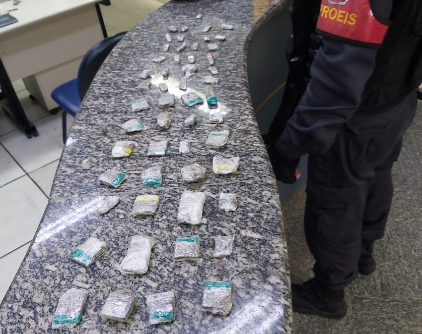 A apreensão ocorreu depois dos policiais militares do Proeis observarem um homem, em atitude suspeita, se aproximar de um terreno baldio na Rua Espírito Santo, em Cidade Praiana. Quando tentaram abordá-lo, ele fugiu e jogou no terreno uma sacola preta, na qual foram encontradas as 57 buchas de maconha.