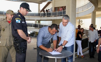 Ao final da cerimônia foi assinado o Termo de Doação dos veículos, oficializando a cessão das motos da Prefeitura para a Polícia Militar.