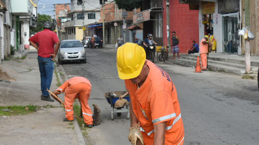 As ações desta semana começaram em Cidade Beira Mar, com equipes atuando na limpeza de via e desobstrução de caixas-ralo e de rede de drenagem na Rua Goiás.