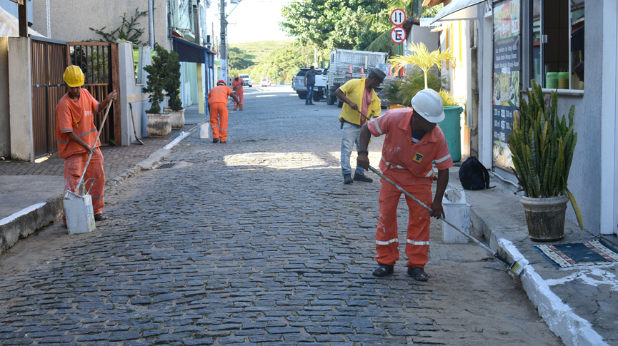 Na avenida Castelo Branco, na Boca da Barra, equipes atuaram na limpeza e na pintura de meio-fio. Cuidados até nos detalhes fazem a diferença.