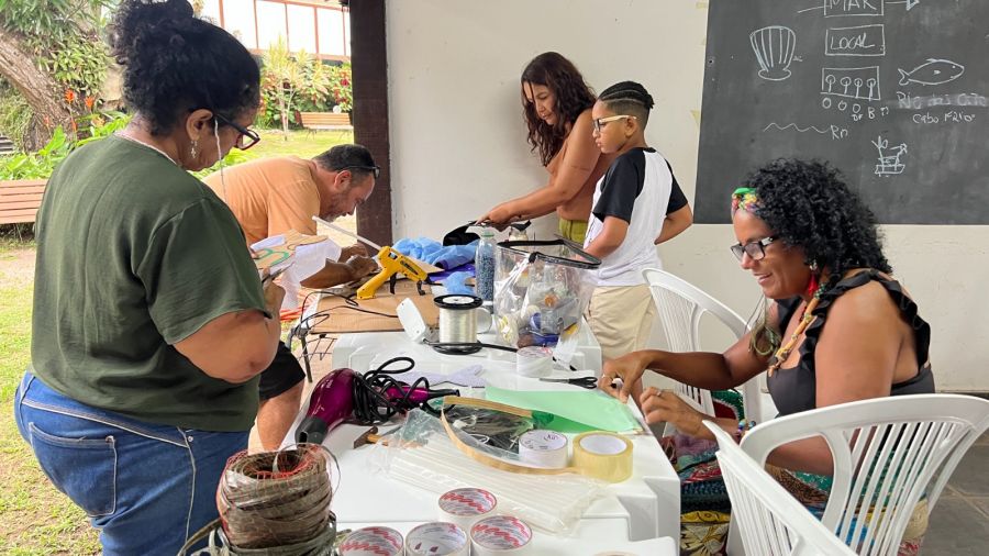 “A ideia era provocar o desbloqueio criativo. Disponibilizamos um acervo de materiais e eles tiveram um tempo determinado de execução para experimentar o trabalho sob pressão”, explicou Pontes. “Foi um momento de troca e aprendizado sobre a história de Rio das Ostras”.