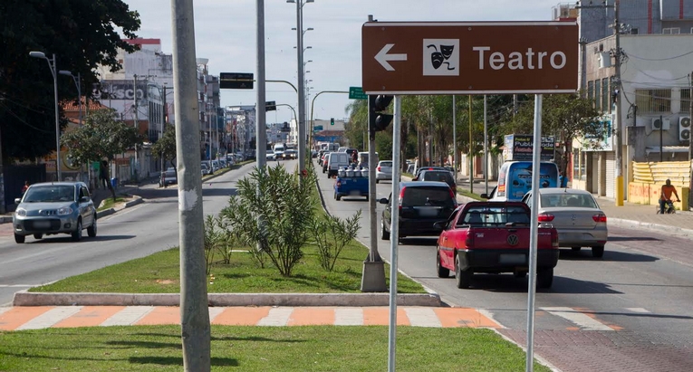 SINALIZAÇÃO TURÍSTICA – O projeto inclui a sinalização de pontos turísticos e de interesse do Município, como o Teatro Popular e o Tayra Ecoparque, no Mar do Norte.