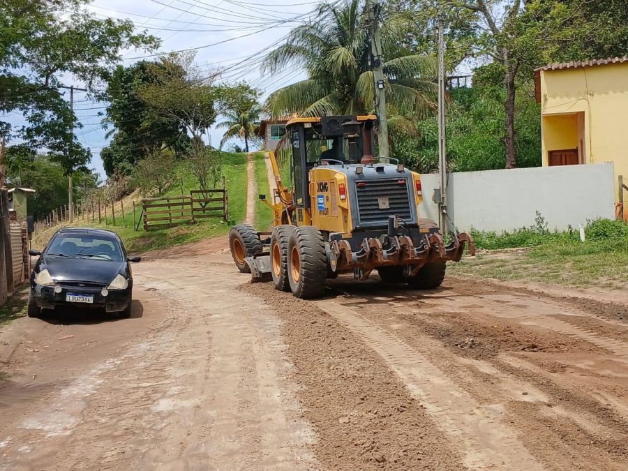Em parceria com o Governo do Estado, as equipes fizeram o nivelamento de vias em Cantagalo, área rural, com apoio de maquinário, para melhorar o tráfego no local.